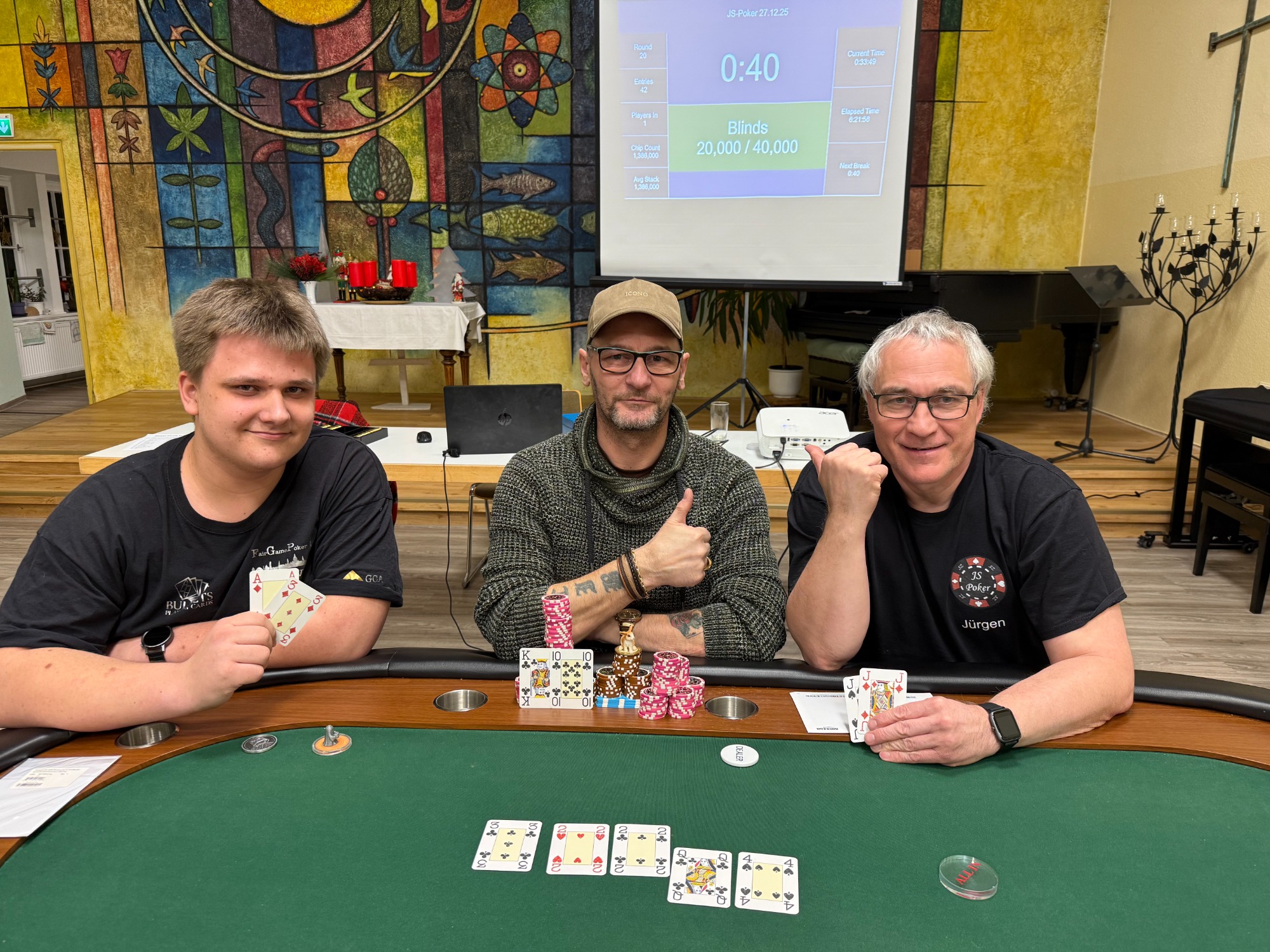 Der Pokersport hier im Umkreis hält zusammen und es entstehen immer neue Freundschaften. Immer wenn es meine Zeit zulässt schaue ich mir gerne an wie es bei anderen Veranstaltern so läuft. Egal ob bei, Welfenpoker in Braunschweig, IDS in Wolfsburg, ÜSG Poker und Fairgamepoker aus Hannover und GPD an wechselnden Standorten, es sind immer super Pokerabende und man hat viel Spaß. Über die Jahre haben sich Freundschaften gebildet und wir besuchen uns immer mal wieder gegenseitig. Ich freue mich immer über Besuch und merke das auch ich immer gerne gesehen bin. Als ich mich vor knapp 3 Jahren dazu entschieden habe www.JS-Poker.de zu gründen hätte ich nie gedacht das ich so gut in der Poker Szene aufgenommen werde. Ich hoffe das es so bleibt und freue mich immer wieder über Besuch. Wer Lust hat kann gerne mal vorbeischauen.