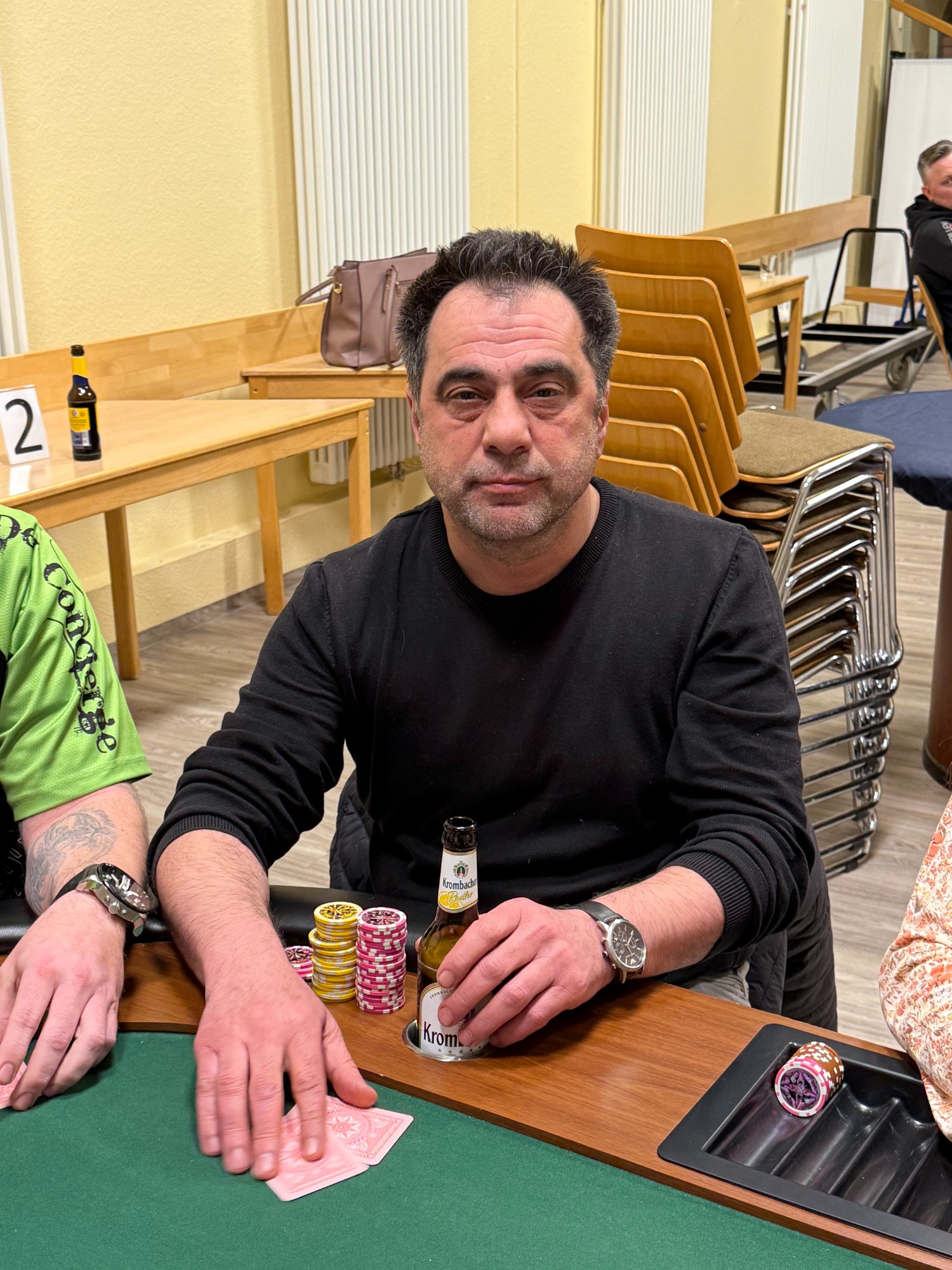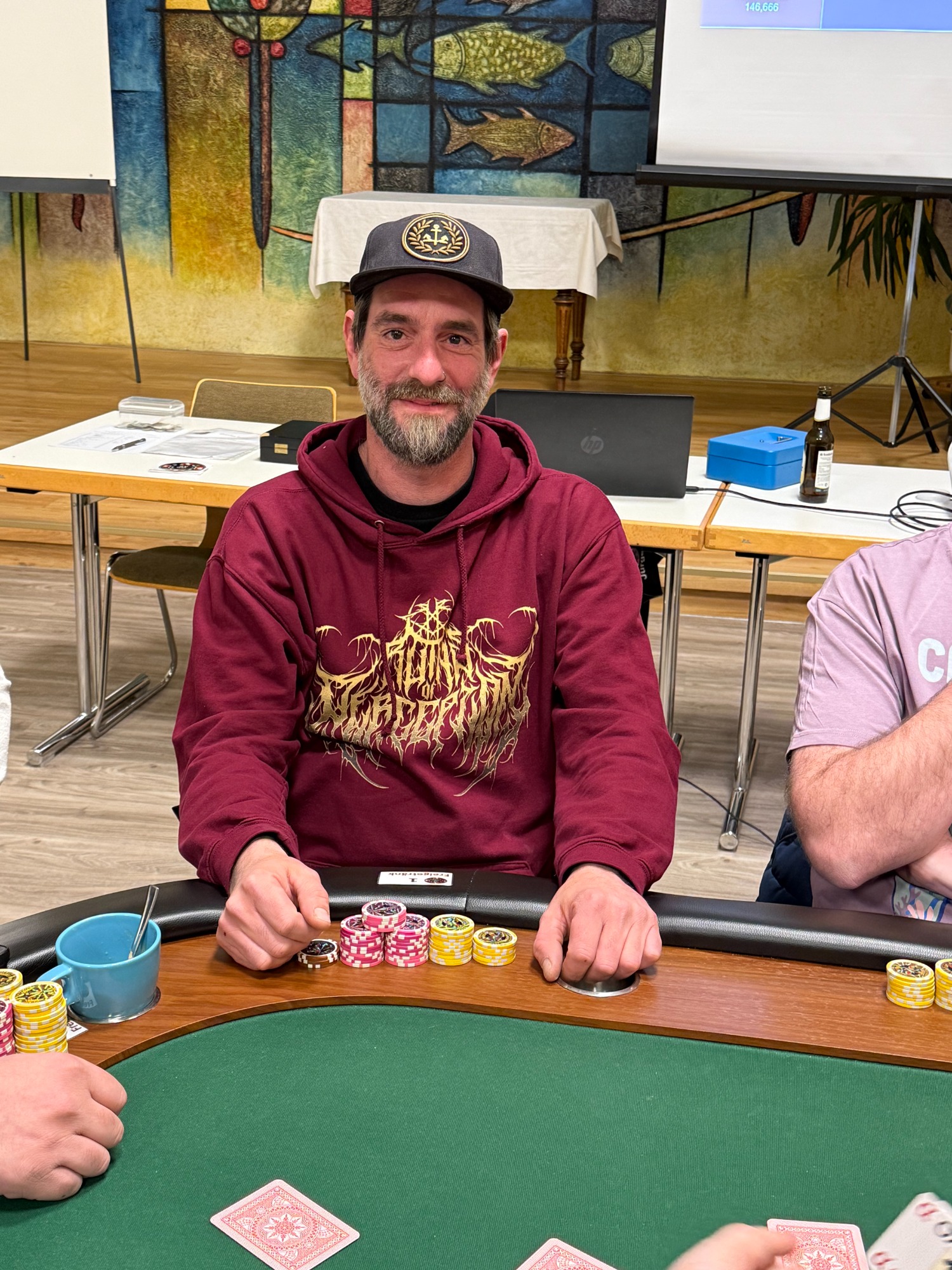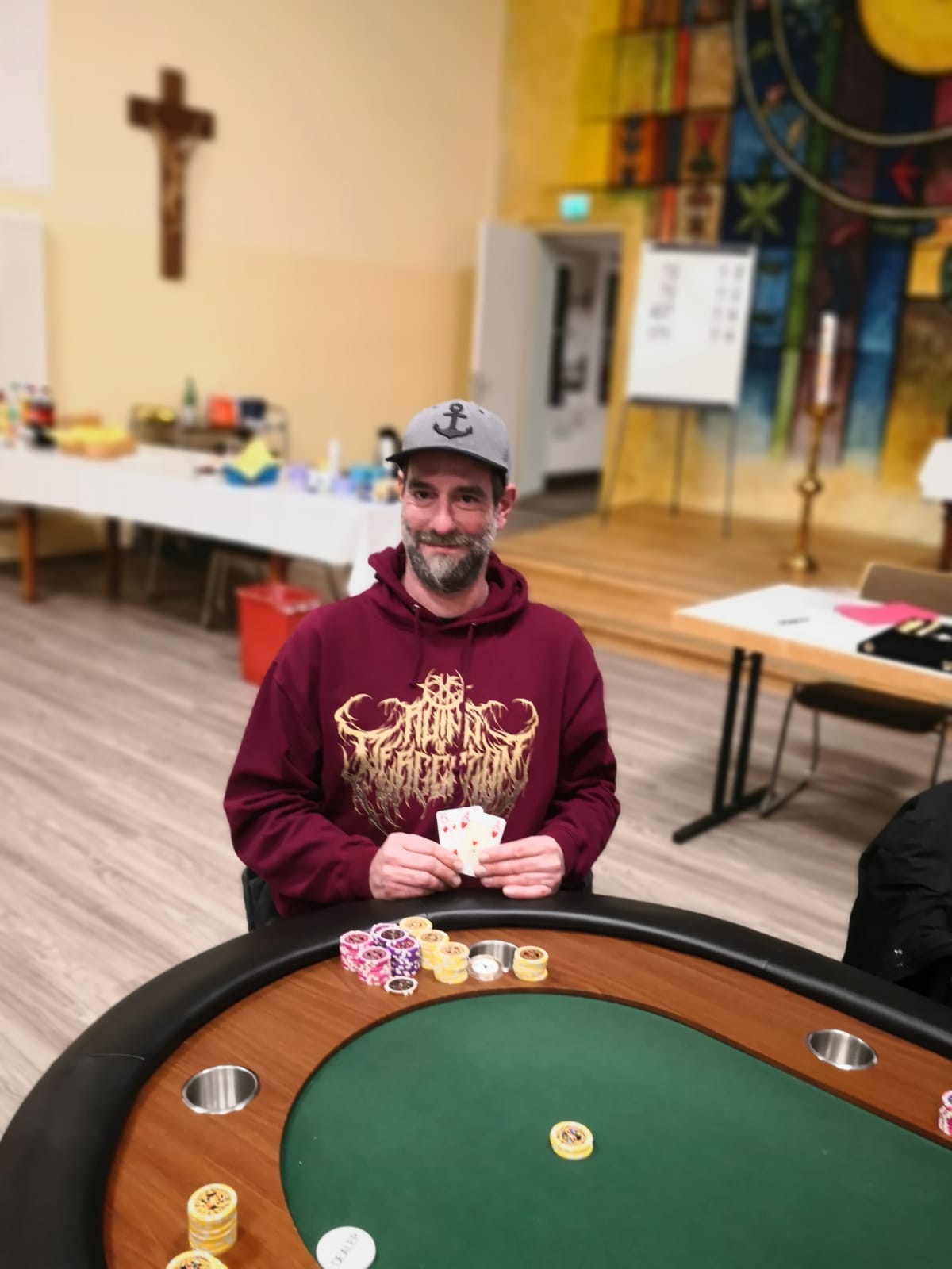 Am Samstag den 6. September 2025 trafen sich 124 Spieler von 9 Turnieranbietern aus der Region um im Andenken von Ali den ersten Alibaba Cup zu spielen. Ich habe mich sehr gefreut das sich mit mir insgesamt 11 Spielerrinnen und Spieler als Team JS-Poker angemeldet hatten. Am Anfang lief es leider für unser Team nicht so gut. Gleich als erster musste Matthias die Tische verlassen. Danach wurde es besser aber wie es in einem Turnier nun mal so ist wurden es nach und nach immer weniger Spieler. Was aber sehr erfreulich war, es haben vier Spieler die letzten drei Tische erreich ab denen es Punkte für die Teamwertung gab. Da ging es dann aber schnell so das die Plätze 23, 22 und 21 von uns belegt wurden. Wölfi hat es mit dem 12 Platz am weitesten geschafft. Am Ende war es der fünfte Platz den wir in der Teamwertung belegten. Ich möchte mich nochmal bei allen bedanken die dafür gesorgt haben, das dieses Turnier statt gefunden hat.