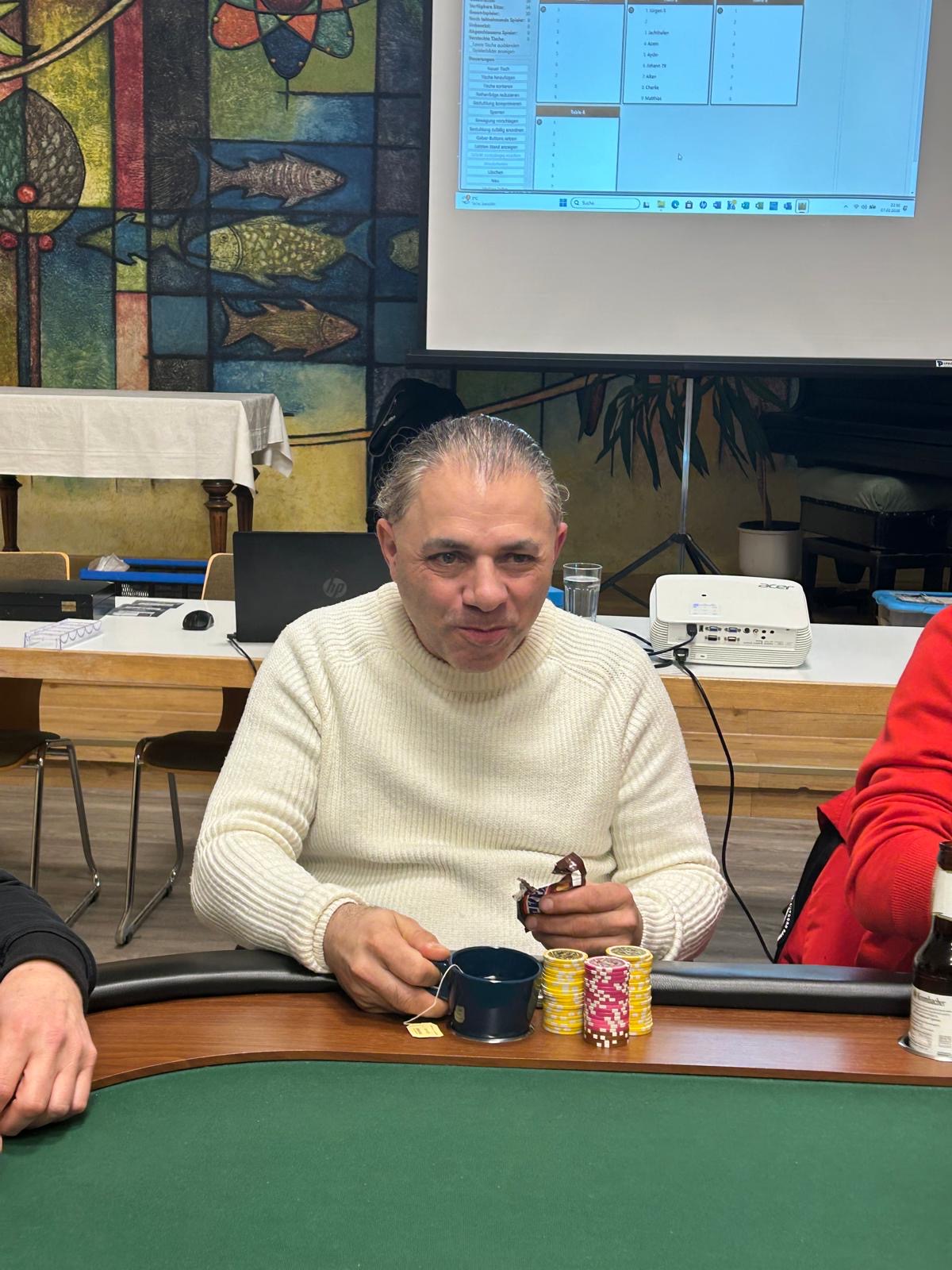 Am 07.03.26 trafen wir uns um den zehnten Spieltag der Saison 2025/26 zu spielen. Diesmal spielten wir mit 40 Spielern. Um 18 Uhr ging es pünktlich los. Gegen 23:35 Uhr erwischte es Jixx250 und der Final Table stand fest. Nach ca 60 Minuten erwischte es Peter K und damit standen Altan und OssiTaimo im Heads Up. Diesmal ging es sehr schnell und nach nur 3 Minuten stand OssiTaimo als Sieger fest. Herzlichen Glückwunsch